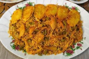 – می توانید مواد لوبیا پلو، باقالی پلو یا عدس پلو را داخل برنج گل کلم بریزید و سرو کنید.