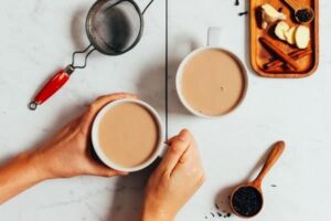 طرز تهیه: چای کیسهای ، دارچین، میخک ، زنجبیل و شیر را در ماهیتابه یا قابلمه ای کوچک بریزید. 2/3 از جوز هندی را رنده کنید و بهمراه 1/5 فنجان آب به قابلمه اضافه کنید. خوب هم بزنید و سپس روی حرارت ملایم قرار دهید.
