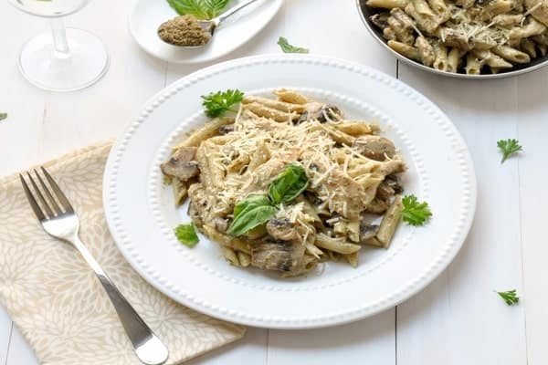 طرز تهیه پاستا پنه آلفردو با مرغ و قارچ