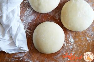 پس از اینکه خمیر را خوب ورز دادید ظرف نسبتا بزرگی را کمی چرب کنید و خمیر را در آن قرار دهید و روی ظرف را با پارچه بپوشانید و به مدت یک ساعت خمیر پیتزا مارگاریتا را در دمای محیط استراحت دهید تا حجم آن دو برابر شود.