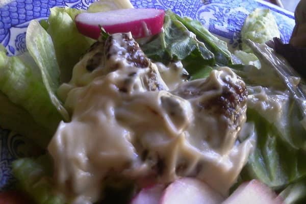 – در برخی از رسپی های این پیش غذا، برنج پخته شده و سیب زمینی آب پز ریخته و گوشت آن را حذف می کنند. همچنین از کنسرو ذرت و نخود فرنگی نیز استفاده کرده و سالاد را کاملا گیاهی می کنند. سپس سس را به تمام مواد اضافه کرده و معمولا به شکل قالبی سرو می کنند.
