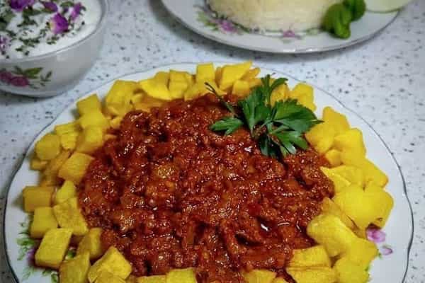 در این فاصله زمانی که مخلوط گوشت چرخکرده در حال پختن است، سیبزمینیها را نگینی خرد کنید و سرخ نمایید.